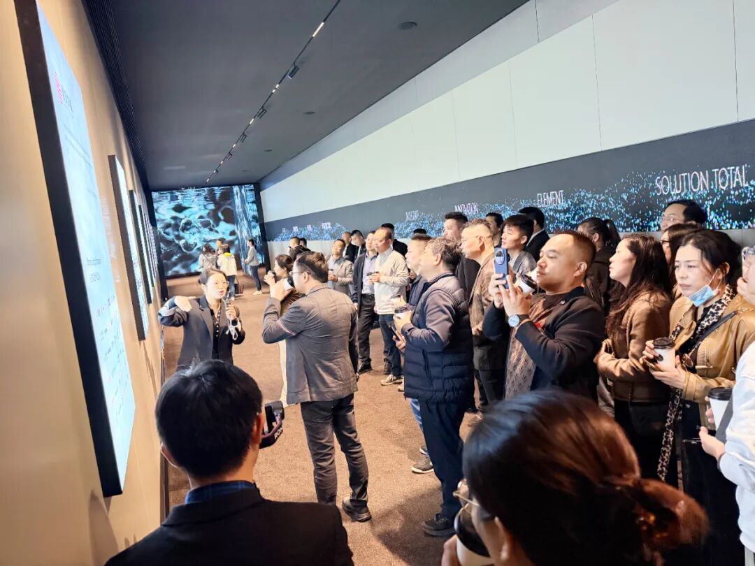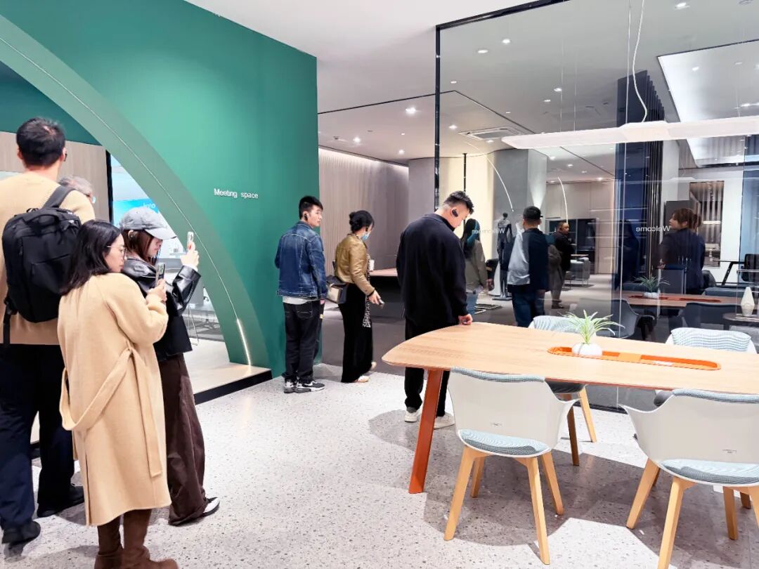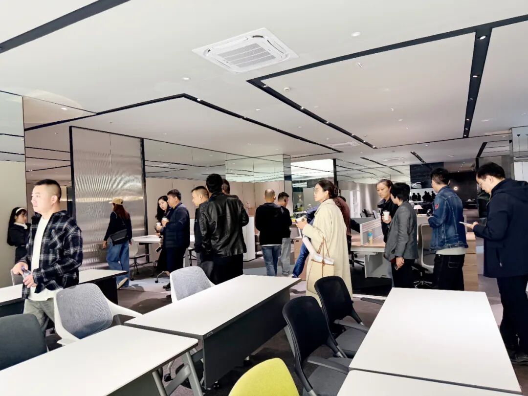 在乐捷旗下科尔卡诺展厅,考察团不仅看到了最新的办公产品,更通过职员空间、总裁空间,以及一比一复刻的招商银行案例展厅,针对医院、会所等多元场景的落地案例,让考察团成员直观感受到品牌强大的空间解决方案能力。