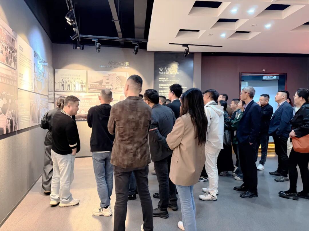 下午,考察团前往坐落于浙江省家具行业协会副理事长单位——大康控股集团有限公司的中国安吉椅业博物馆。博物馆以椅业文化为背景,讲解椅子的结构和造型的演变历程,从世界、中国以及安吉椅子的发展,以及现代绿色家居等方面,全面反映了椅子5000年的发展史、创新史。考察团成员们深入了解了中国椅业产业从起步到成为全球重要产业基地的崛起历程。