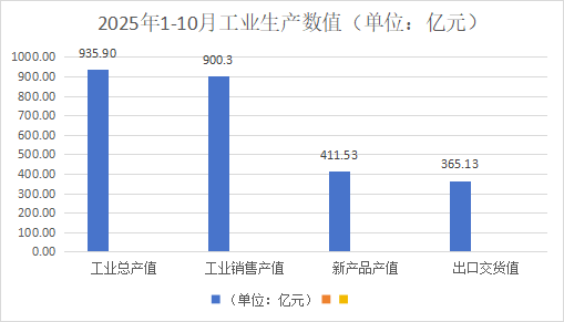 累计实现工业销售产值900.30亿元,同比下降3.9%,10月单月实现工业销售产值90.17亿元,同比增长9.1%;