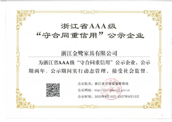 10月30日,萧山区市场监督管理局临浦所所长俞钢带队走访辖区“守合同重信用”申报成功企业,金鹭家具喜获AAA级“守合同重信用”企业荣誉。