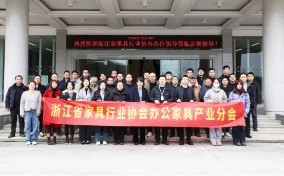 3月7日,浙江省家具行业协会办公家具产业分会组织近20家会员单位代表赴“中国椅业之乡”安吉,走访协会副理事长单位永艺家具股份有限公司、常务理事单位浙江润大柯泓家具有限公司,强化产业链上下游协同,挖掘行业新质生产力潜能,推动办公家具产业高质量发展。