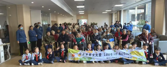 3月2日,圣奥慈善基金会携手杭州上海世外学校13位学生志愿者,在杭州静孝颐养院开展“童心相连·情暖夕阳”主题敬老活动,为院内老人送去春日温暖。