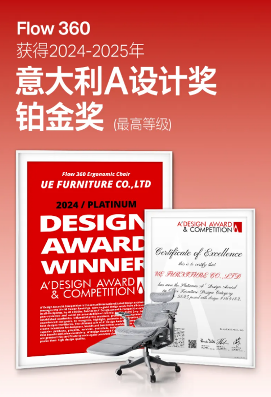 5月,永艺股份凭借领先的研发设计能力与深度的用户需求洞察,持续深化研发创新,其产品Flow360荣获意大利A设计奖铂金奖。