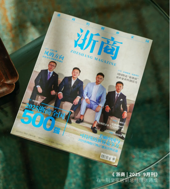 9月30日,明堂副总经理张通成登上《浙商》杂志封面,封面主题为“以东方美学‘匠造’理想生活”,报道详细阐述其推动传统家具行业创新发展的实践与理念。